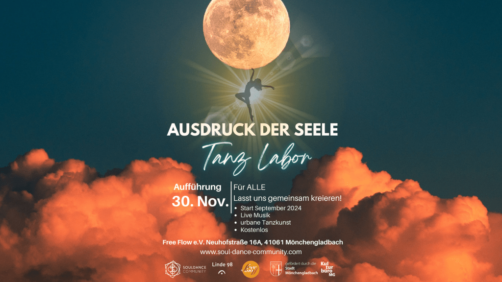 „Ausdruck der Seele“ ist ein Tanzlabor für Menschen allen Alters und jeglicher Herkunft. Es dient dazu, gemeinsam zu experimentieren, zu kreieren und zu verbinden. Wie verbindet Tanz Menschen miteinander? Wie kann ich Tanz als eine Art der Kommunikation nutzen und wie drückt sich meine Seele dadurch aus? Ein Format, welches Tanzbegeisterten ermöglicht, zusammen zu kommen und sich selbst durch Tanz zu entdecken, auszudrücken und gemeinsam zu kreieren.